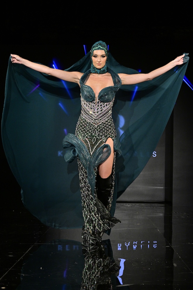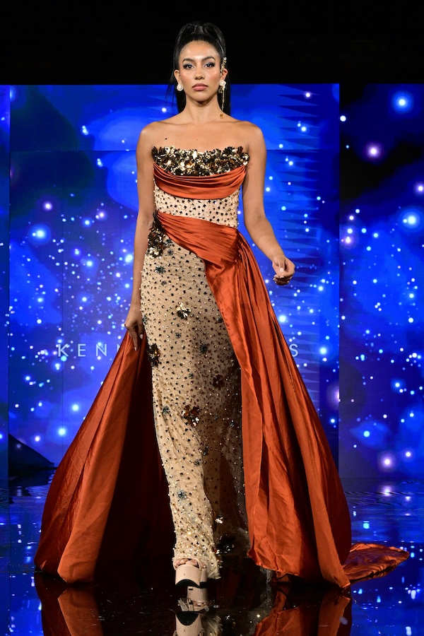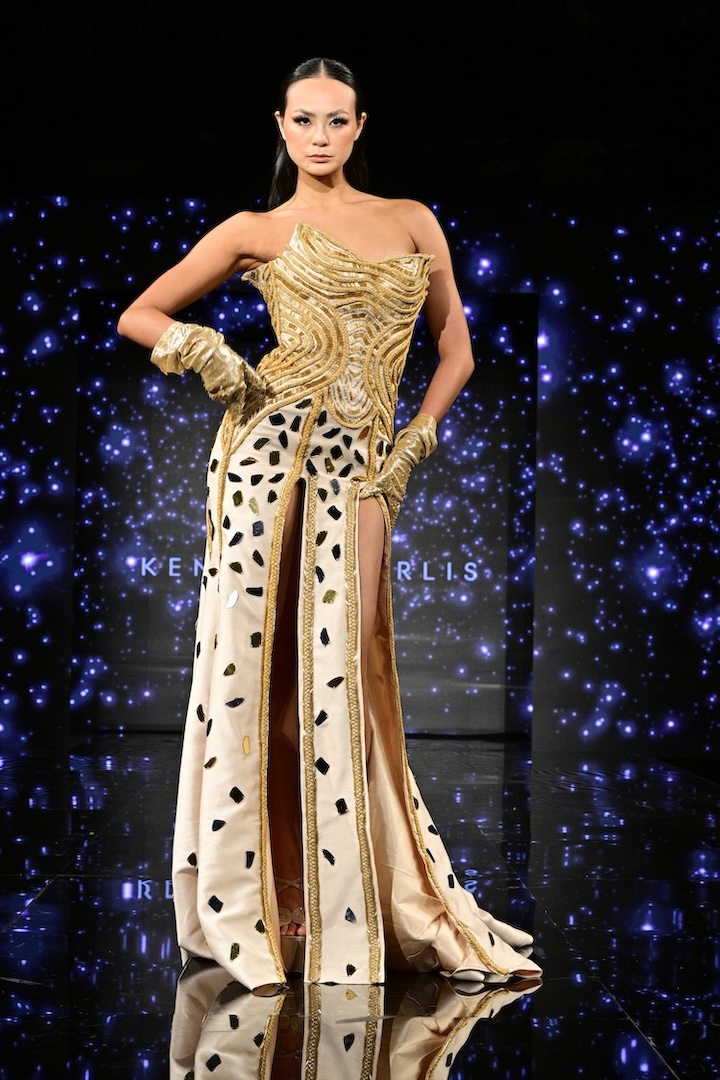Luxury fashion designer Kenneth Barlis was the second designer to showcase their newest collection at Art Hearts. A couture evening wear brand, it has gained recognition in several esteemed publications, and several celebrities have graced its designs on the red carpet. This season, Barlis unveiled numerous gowns and suits in a variety of colors and patterns, with a floral theme undertone throughout the entire collection.