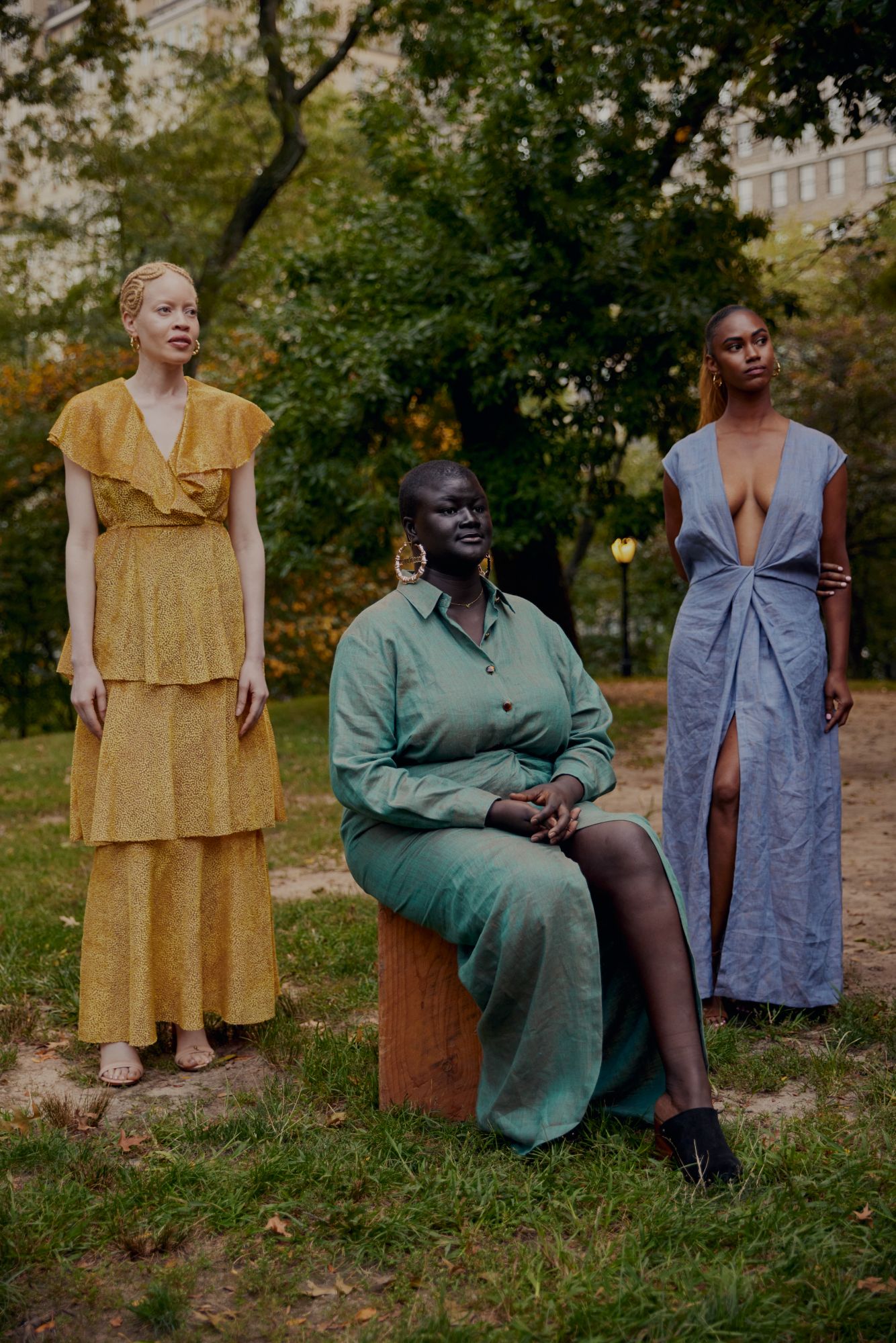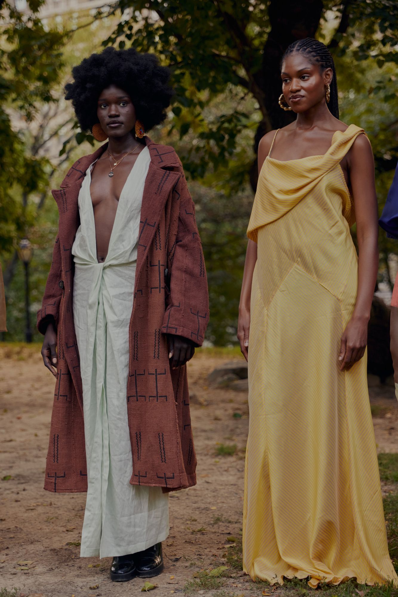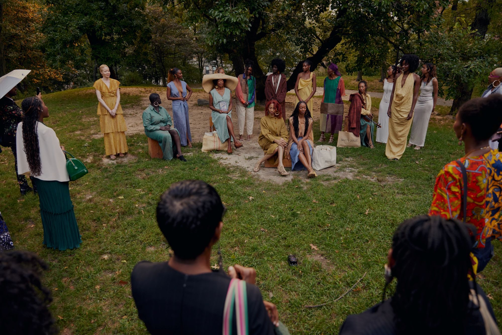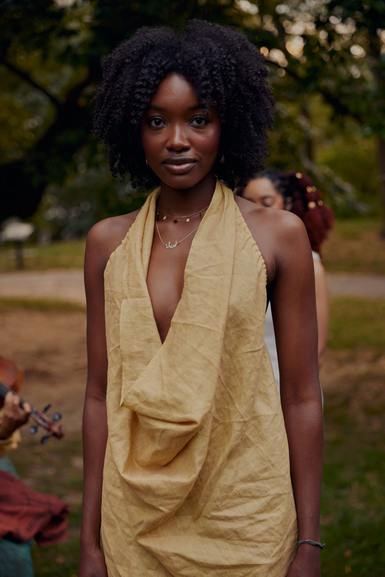Hosted at a stunning Central Park location, Summit Hill provided the perfect backdrop for a show that invited the community to connect with not only the designs but the stories of the people wearing them. Lush, comforting hues—sage green, olive, gold, and velvety oranges—complemented the natural surroundings, creating a harmonious marriage between fashion and environment.