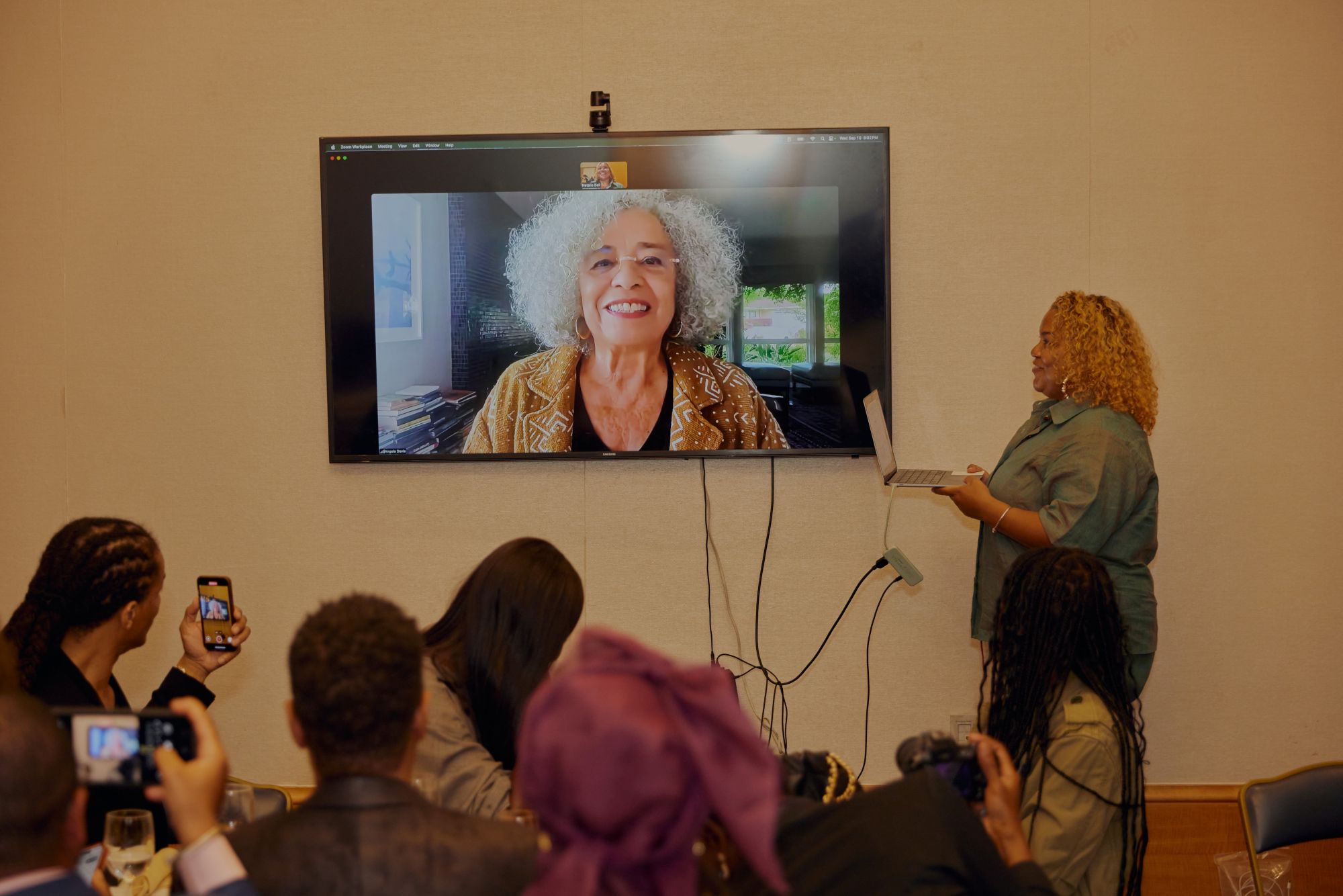 At a second location, Activist Angela Davis addressed the audience before the dinner, speaking on the intersection of queer liberation and Black liberation, as well as the rise of AI. She discussed the challenges and opportunities that come with new technologies and how we can move forward while staying true to creativity, self-expression, and the values we hold dear.
