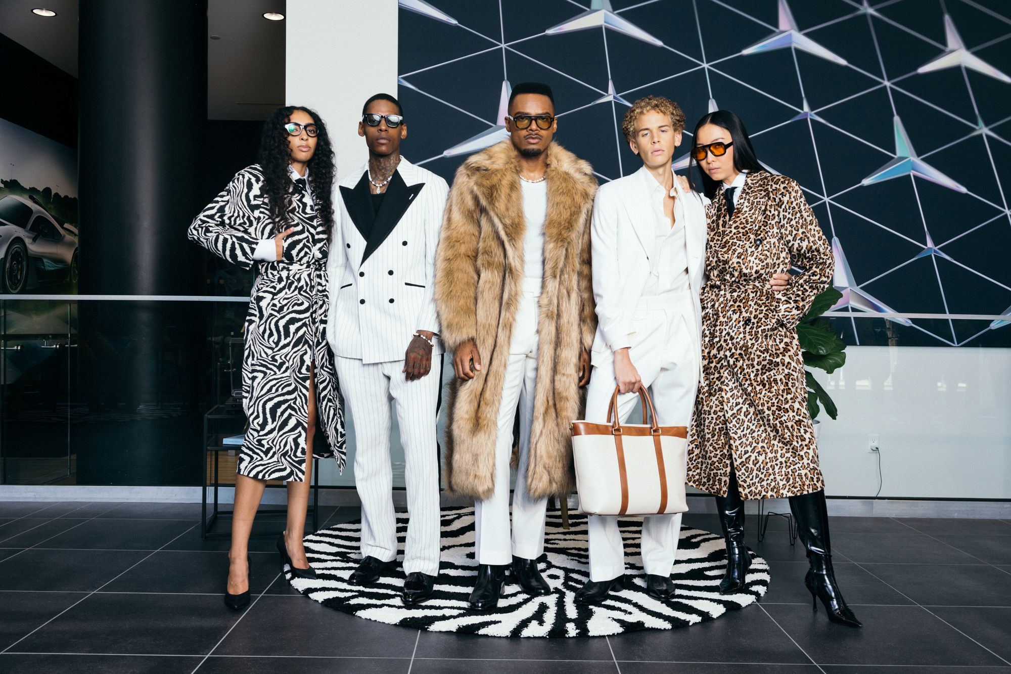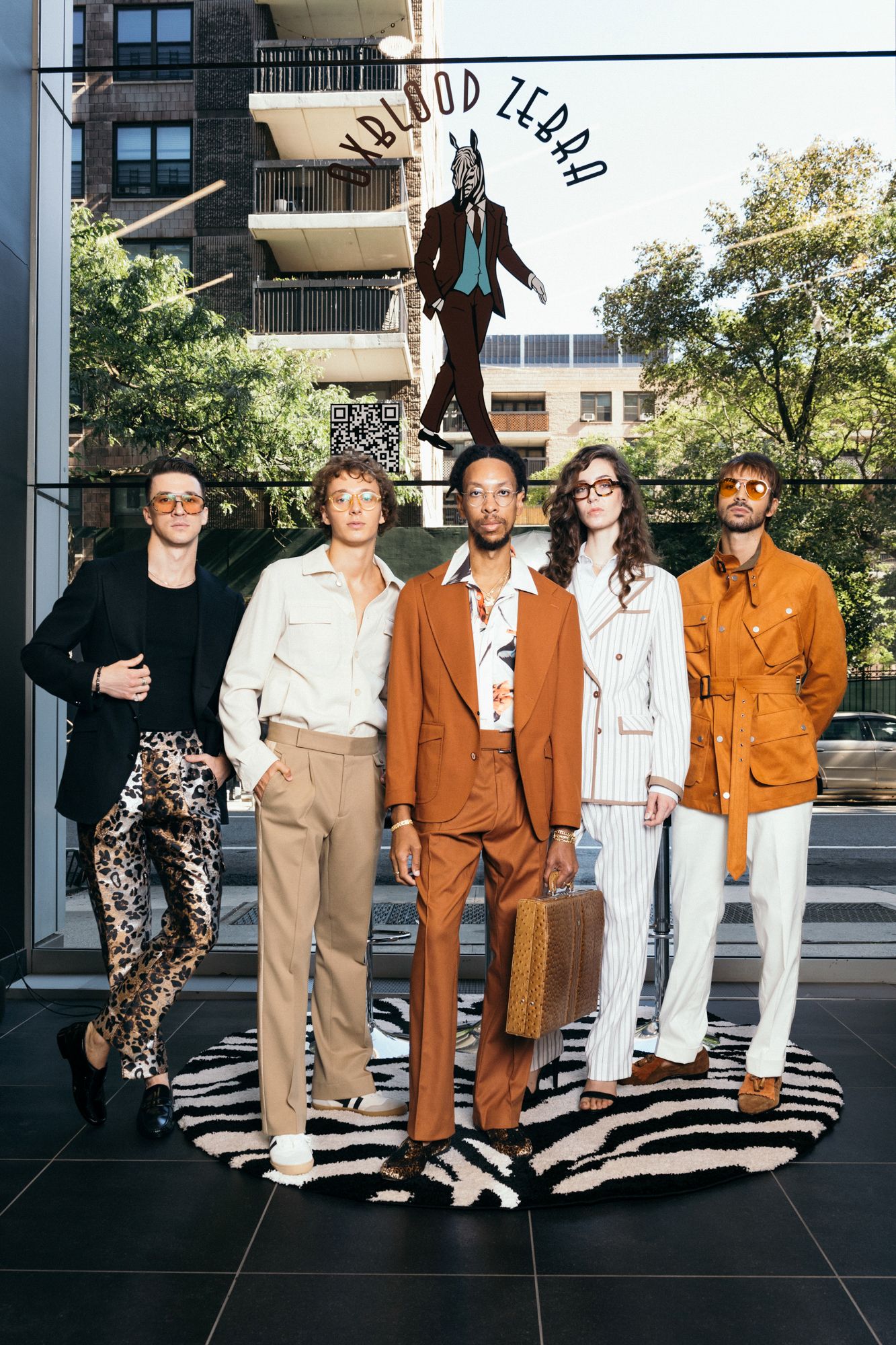 Models were sectioned off in groups of five, each with their own circular zebra print rug to pose on. The outfits were accompanied by classic work and on-the-go accessories like handbags and ball caps in dark muted colors, maintaining an effortless New Yorker edge. At its heart, The Oxblood Zebra is about rejecting monotony and refusing the standard work uniform and instead